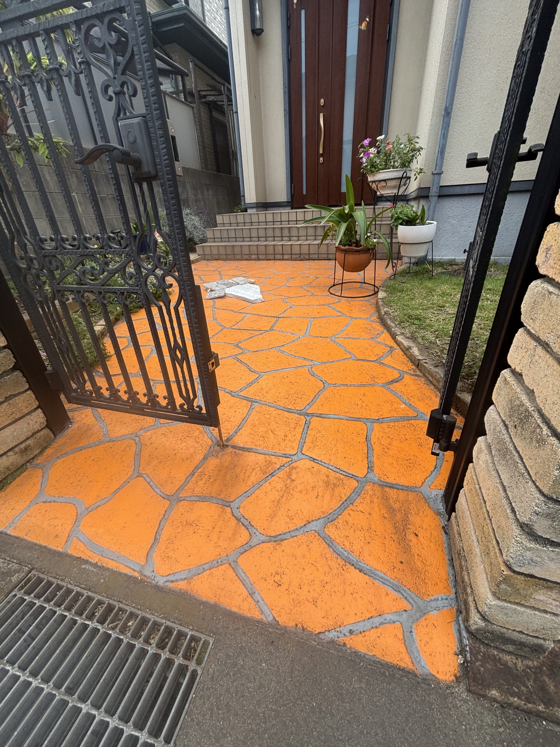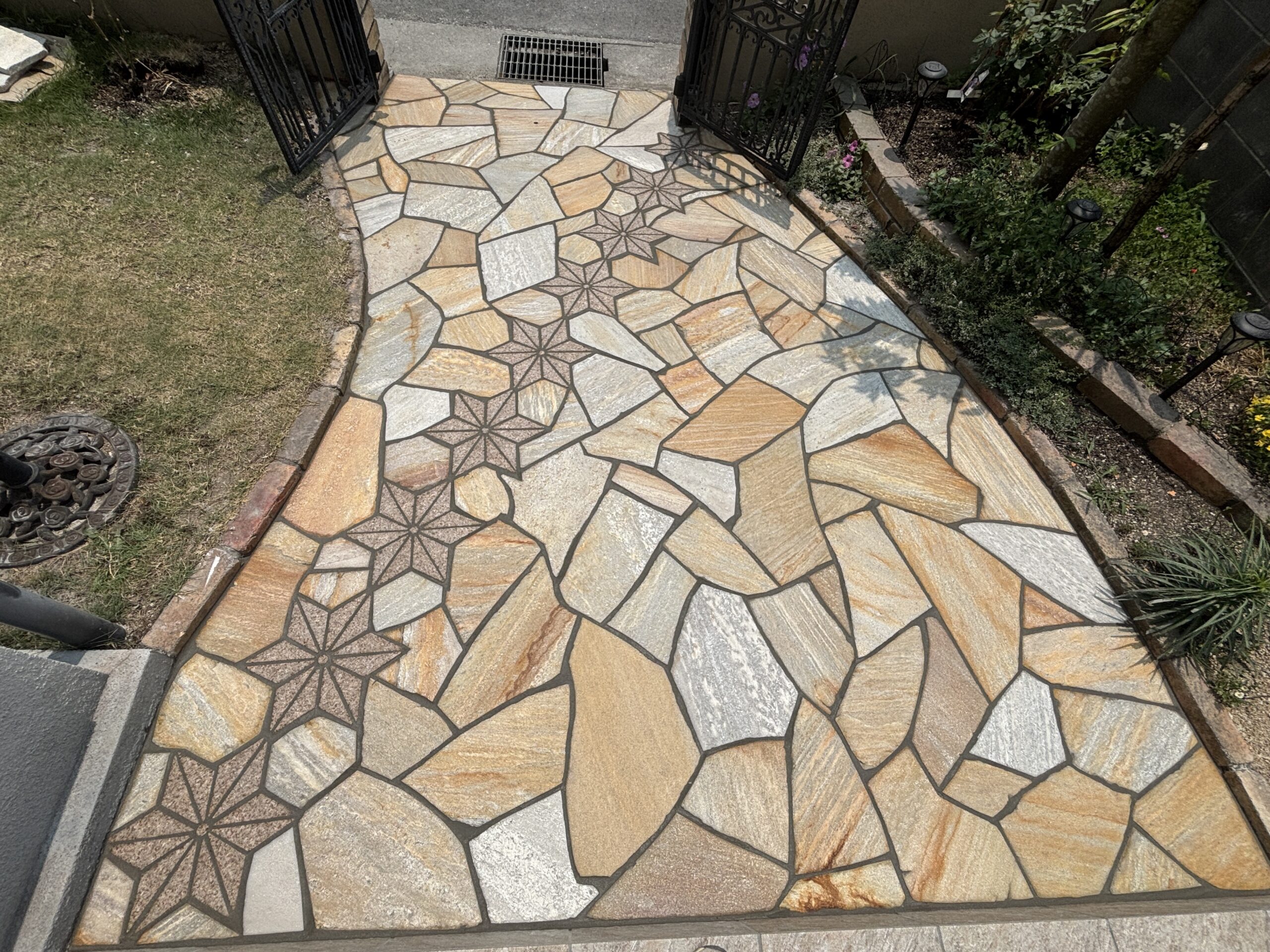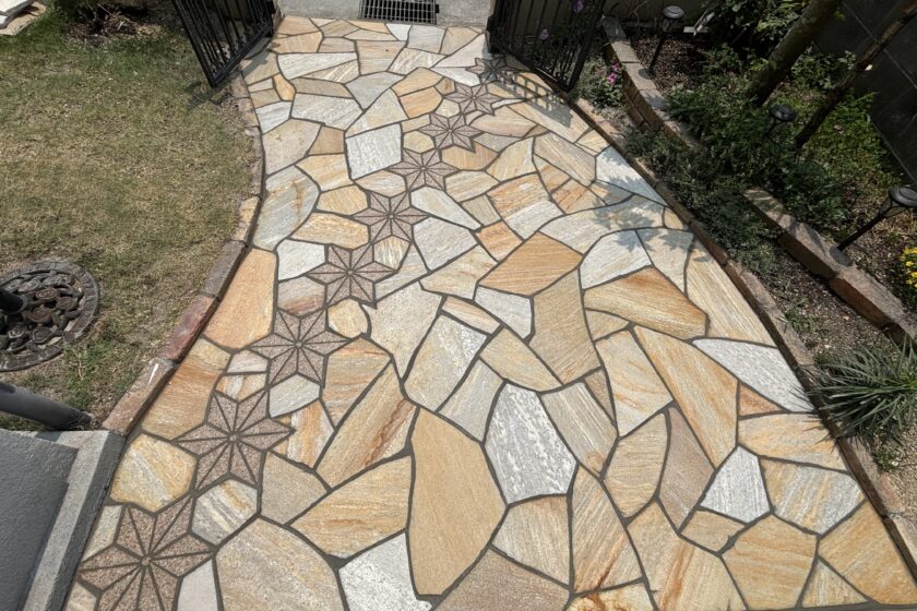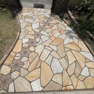 乱形石貼り 御影石模様細工 アプローチ貼り替え工事