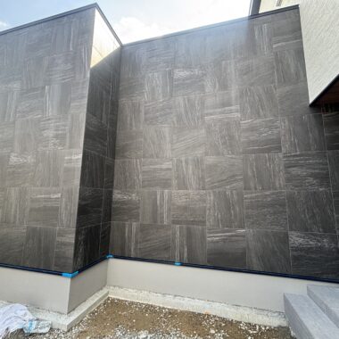 LIXIL プレリュード 外壁タイル・玄関部分貼り施工例/工事